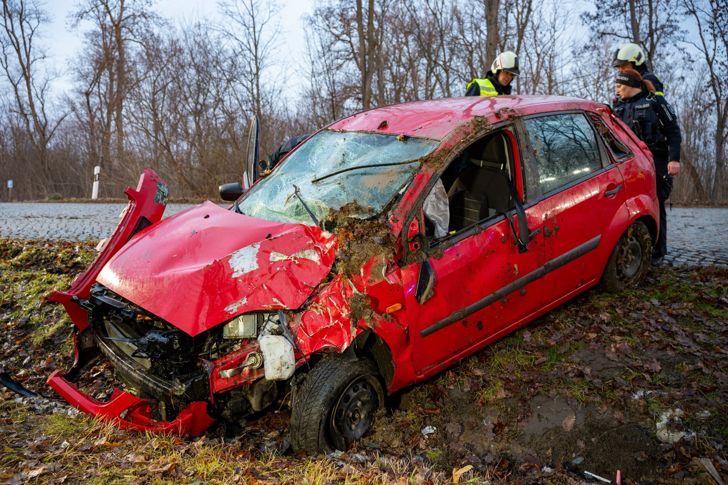 Gegen 7:15 Uhr kam es auf der Blutstraße nahe Buchenwald bei Weimar zu einem schweren Verkehrsunfall. Die Fahrerin eines Pkw Ford Fiesta befuhr die Straße in Richtung Weimar. In einer langgezogenen Rechtskurve kam sie vermutlich aufgrund von Straßenglätte von der Fahrbahn ab, überschlug sich und kollidierte frontal mit einem Baum.