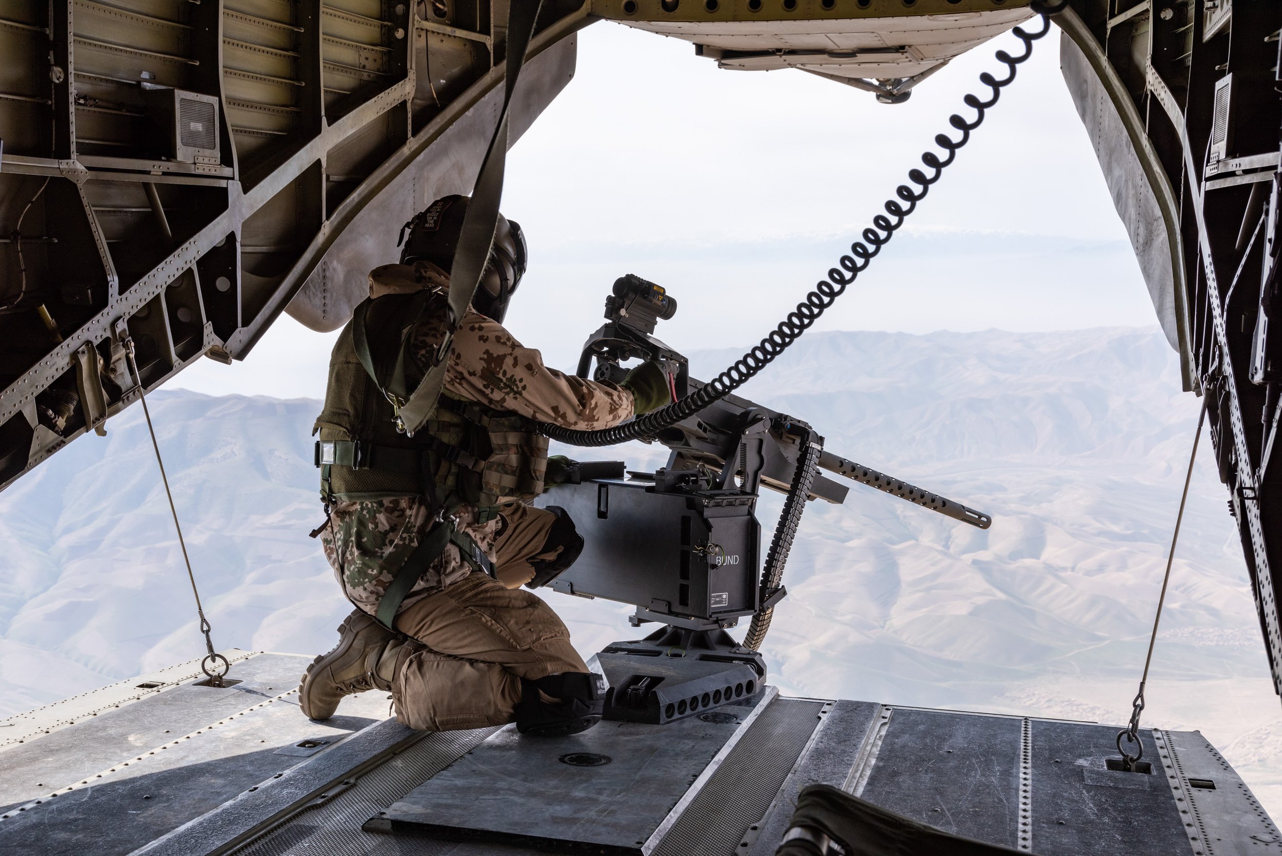Mit einem CH-53-Transporthubschrauber flogen wir weiter in das Lager Kundus. Während der anschließenden Führung wurden wir permanent von schwer bewaffneten Kräften der „Guardian Angels“ (der deutschen Force Protection Kompanie) gesichert.